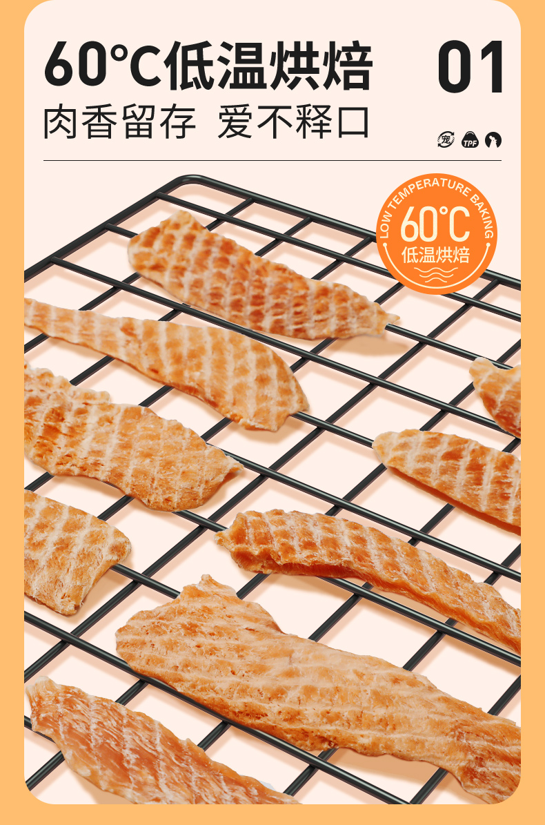 ·60℃低溫烘焙,肉香留存